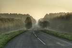 2008De Torenvalkweg bij de Oostvaardersplassen in Flevoland in de mist vroeg in de ochtend